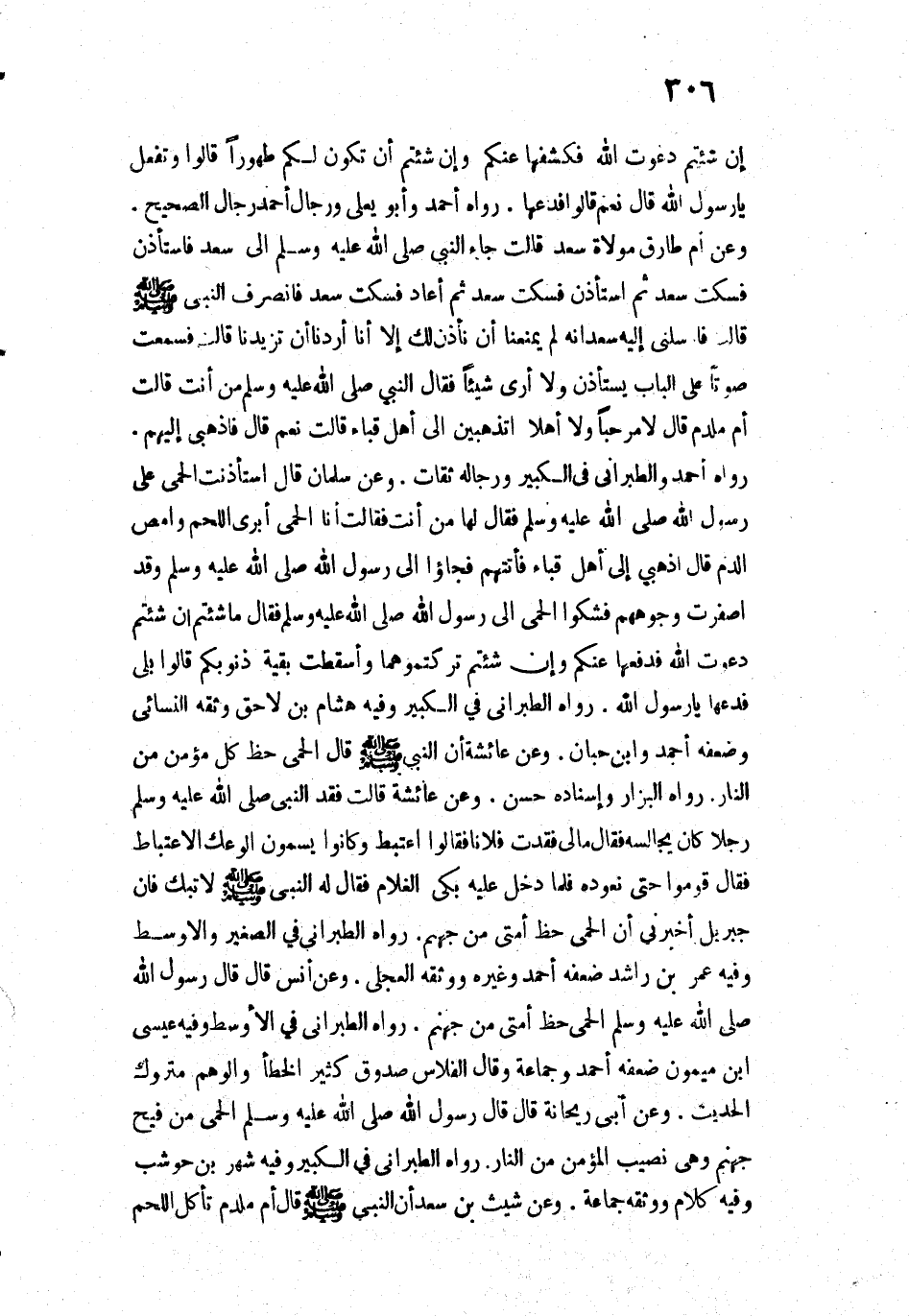 3823 - وَعَنْ أُمِّ طَارِقٍ مَوْلَاةِ سَعْدٍ قَالَتْ: «جَاءَ النَّبِيُّ - صَلَّى اللَّهُ عَلَيْهِ وَسَلَّمَ - إِلَى سَعْدٍ فَاسْتَأْذَنَ فَسَكَتَ سَعْدٌ ثُمَّ اسْتَأْذَنَ فَسَكَتَ سَعْدٌ ثُمَّ أَعَادَ فَسَكَتَ سَعْدٌ فَانْصَرَفَ النَّبِيُّ - صَلَّى اللَّهُ عَلَيْهِ وَسَلَّمَ - قَالَتْ: فَأَرْسَلَنِي إِلَيْهِ سَعْدٌ أَنَّهُ لَمْ يَمْنَعْنَا أَنْ نَأْذَنَ لَكَ إِلَّا أَنَّا أَرَدْنَا أَنْ تَزِيدَنَا قَالَتْ: فَسَمِعْتُ صَوْتًا عَلَى الْبَابِ يَسْتَأْذِنُ وَلَا أَرَى شَيْئًا فَقَالَ النَّبِيُّ - صَلَّى اللَّهُ عَلَيْهِ وَسَلَّمَ -: " مَنْ أَنْتِ؟ " قَالَتْ: " أُمُّ مِلْدَمٍ " قَالَ: " لَا مَرْحَبًا وَلَا أَهْلًا أَتَذْهَبِينَ إِلَى أَهْلِ قُبَاءٍ " قَالَتْ: نَعَمْ قَالَ: " فَاذْهَبِي إِلَيْهِمْ».