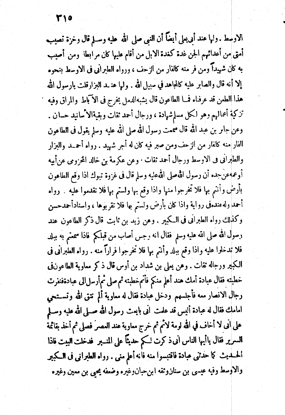3874 - وَعَنْ يَعْلَى بْنِ شَدَّادِ بْنِ أَوْسٍ قَالَ: ذَكَرَ مُعَاوِيَةُ الطَّاعُونَ فِي خُطْبَتِهِ فَقَالَ عُبَادَةُ: أُمُّكَ هِنْدٌ أَعْلَمُ مِنْكُمْ فَأَتَمَّ خُطْبَتَهُ ثُمَّ صَلَّى ثُمَّ أَرْسَلَ إِلَى عُبَادَةَ فَنَفَرَتْ رِجَالُ الْأَنْصَارِ مَعَهُ فَأَجْلَسَهُمْ وَدَخَلَ عُبَادَةُ فَقَالَ لَهُ مُعَاوِيَةُ: أَلَمْ تَتَّقِ اللَّهَ وَتَسْتَحِي إِمَامَكَ؟ فَقَالَ لَهُ عُبَادَةُ: أَلَيْسَ قَدْ عَلِمْتَ أَنِّي بَايَعْتُ رَسُولَ اللَّهِ - صَلَّى اللَّهُ عَلَيْهِ وَسَلَّمَ - عَلَى أَنِّي لَا أَخَافُ فِي اللَّهِ لَوْمَةَ لَائِمٍ ثُمَّ خَرَجَ مُعَاوِيَةُ عِنْدَ الْعَصْرِ فَصَلَّى ثُمَّ أَخَذَ بِقَائِمَةِ السَّرِيرِ فَقَالَ: يَا أَيُّهَا النَّاسُ إِنِّي ذَكَرْتُ لَكُمْ حَدِيثًا عَلَى الْمِنْبَرِ فَدَخَلْتُ الْبَيْتَ فَإِذَا الْحَدِيثُ كَمَا حَدَّثَنِي عُبَادَةُ فَاقْتَبِسُوا مِنْهُ فَإِنَّهُ أَعْلَمُ مِنِّي.