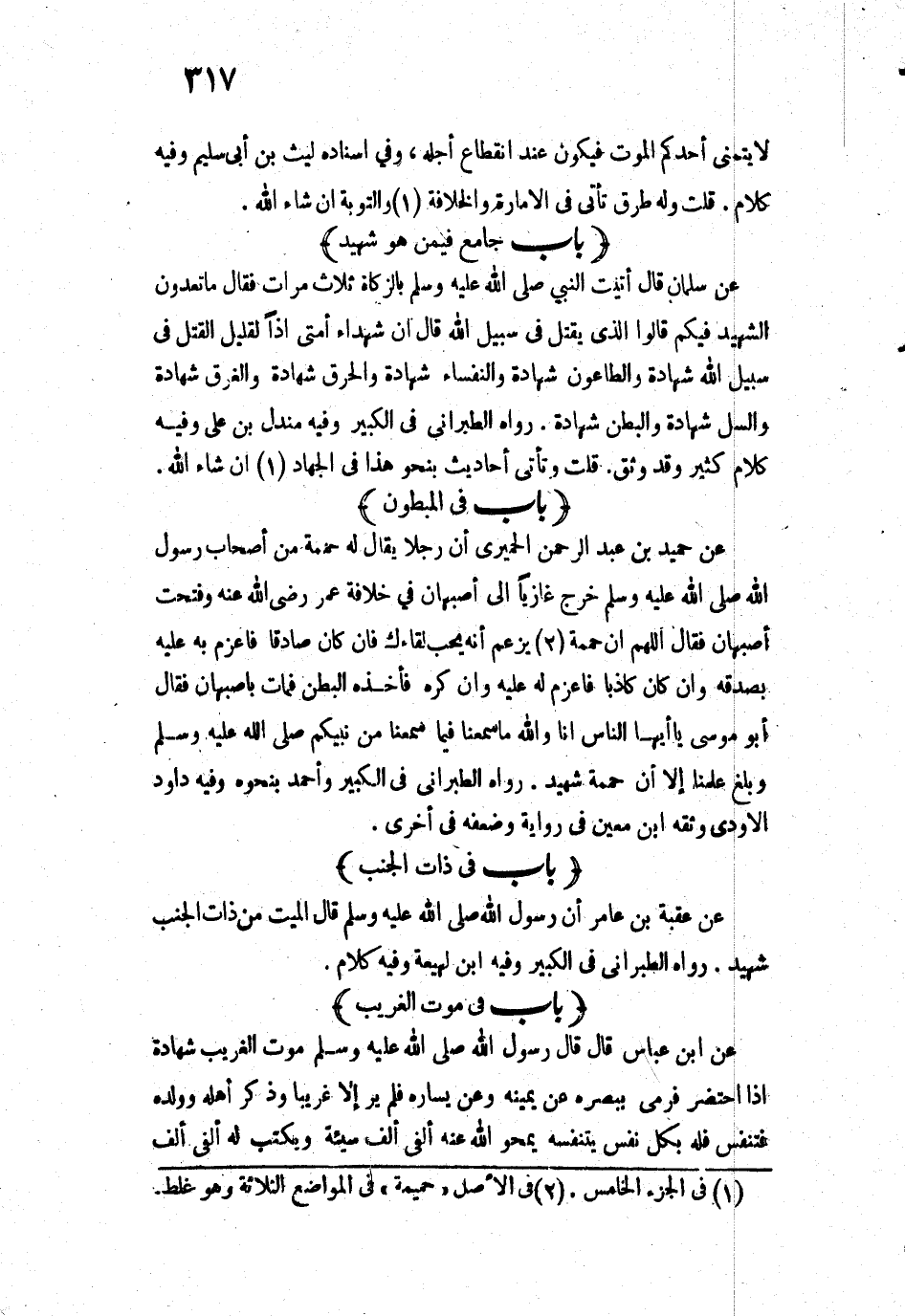 3878 - عَنْ سَلْمَانَ قَالَ: «أَتَيْتُ النَّبِيَّ - صَلَّى اللَّهُ عَلَيْهِ وَسَلَّمَ - بِالزَّكَاةِ ثَلَاثَ مَرَّاتٍ فَقَالَ: " مَا تَعُدُّونَ الشَّهِيدَ فِيكُمْ؟ " قَالُوا: الَّذِي يُقْتَلُ فِي سَبِيلِ اللَّهِ قَالَ: " إِنَّ شُهَدَاءَ أُمَّتِي إِذَنْ لِقَلِيلٌ: الْقَتْلُ فِي سَبِيلِ اللَّهِ شَهَادَةٌ، وَالطَّاعُونُ شَهَادَةٌ، وَالنُّفَسَاءُ شَهَادَةٌ، وَالْحَرْقُ شَهَادَةٌ، وَالْغَرَقُ شَهَادَةٌ، وَالسُّلُّ شَهَادَةٌ، وَالْبَطْنُ شَهَادَةٌ».