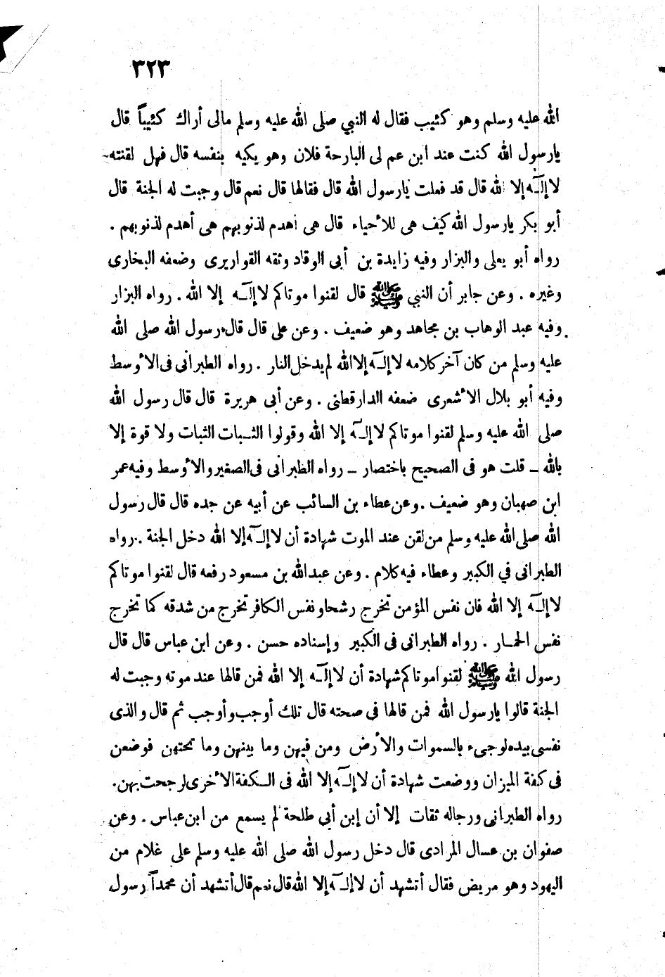 اللَّهُ عَلَيْهِ وَسَلَّمَ -: " مَا لِي أَرَاكَ كَئِيبًا؟ " قَالَ: يَا رَسُولَ اللَّهِ كُنْتُ عِنْدَ ابْنِ عَمٍّ لِيَ الْبَارِحَةَ - فُلَانٍ - وَهُوَ يَكِيدُ بِنَفْسِهِ قَالَ: " فَهَلْ لَقَّنْتَهُ لَا إِلَهَ إِلَّا اللَّهُ " قَالَ: قَدْ فَعَلْتُ يَا رَسُولَ اللَّهِ قَالَ: " فَقَالَهَا؟ " قَالَ: نَعَمْ قَالَ: " وَجَبَتْ لَهُ الْجَنَّةُ " قَالَ أَبُو بَكْرٍ: يَا رَسُولَ اللَّهِ كَيْفَ هِيَ لِلْأَحْيَاءِ؟ قَالَ: " هِيَ أَهْدَمُ لِذُنُوبِهِمْ هِيَ أَهْدَمُ لِذُنُوبِهِمْ».