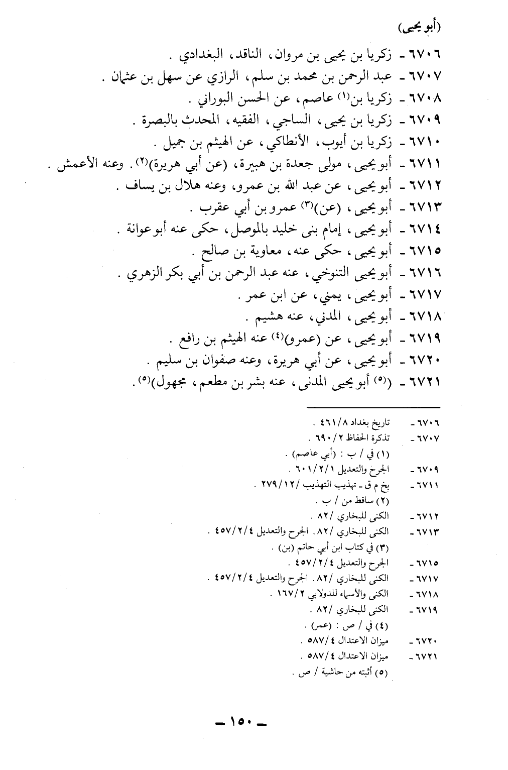 6721- * (أبو يحيى المدني، عنه بشر بن مطعم، مجهول) 5.