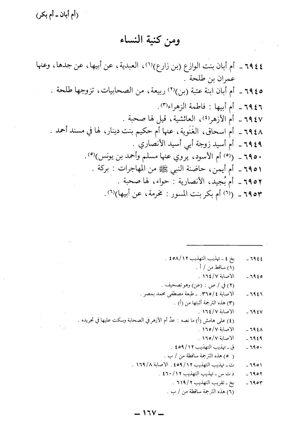 6953- * (أم بكر بنت المسور: مخرمة، عن أبيها) 6.