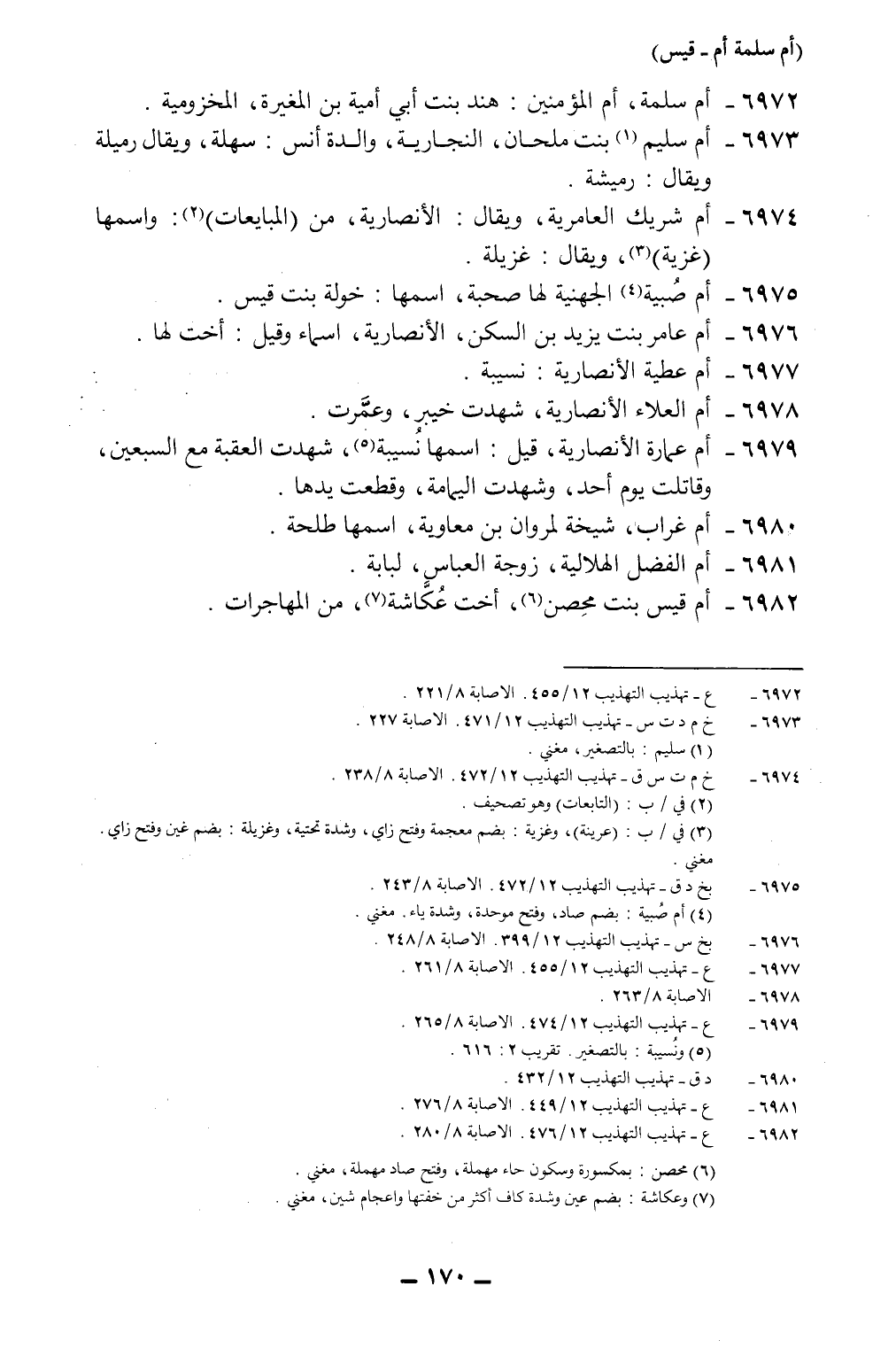 6982- *أم قيس بنت مِحصن6، أخت عُكَّاشة7، من المهاجرات.