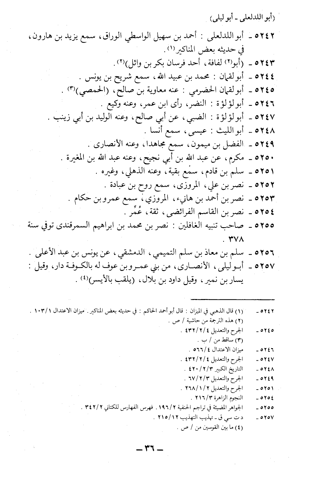 5255- *صاحب تنبيه الغافلين" نصر بن محمد بن إبراهيم السمرقندي، توفي سنة (378) .
