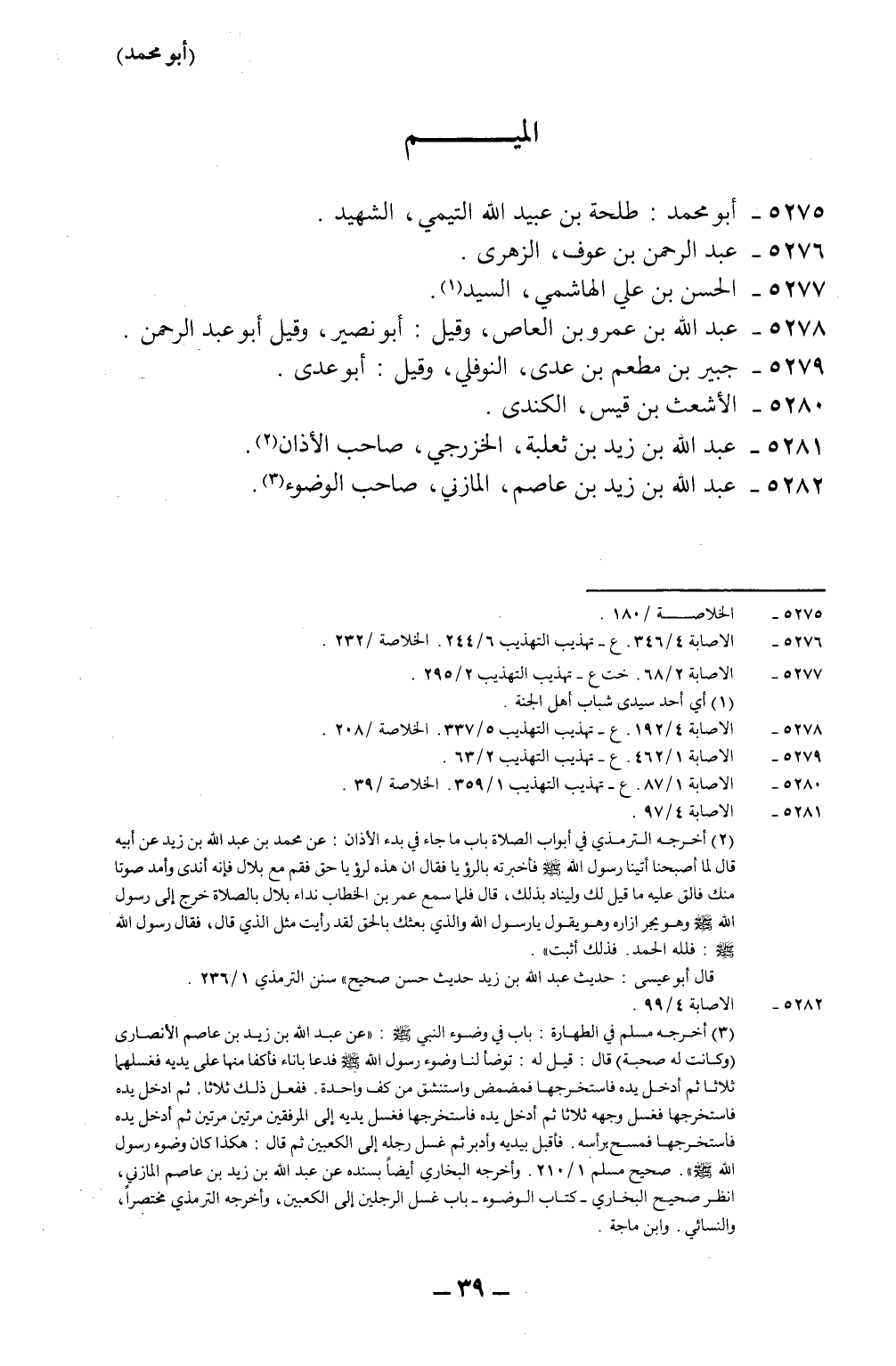 5280-* الإصابة 1/87، ع- تهذيب التهذيب 1/359، الخلاصة: 39.