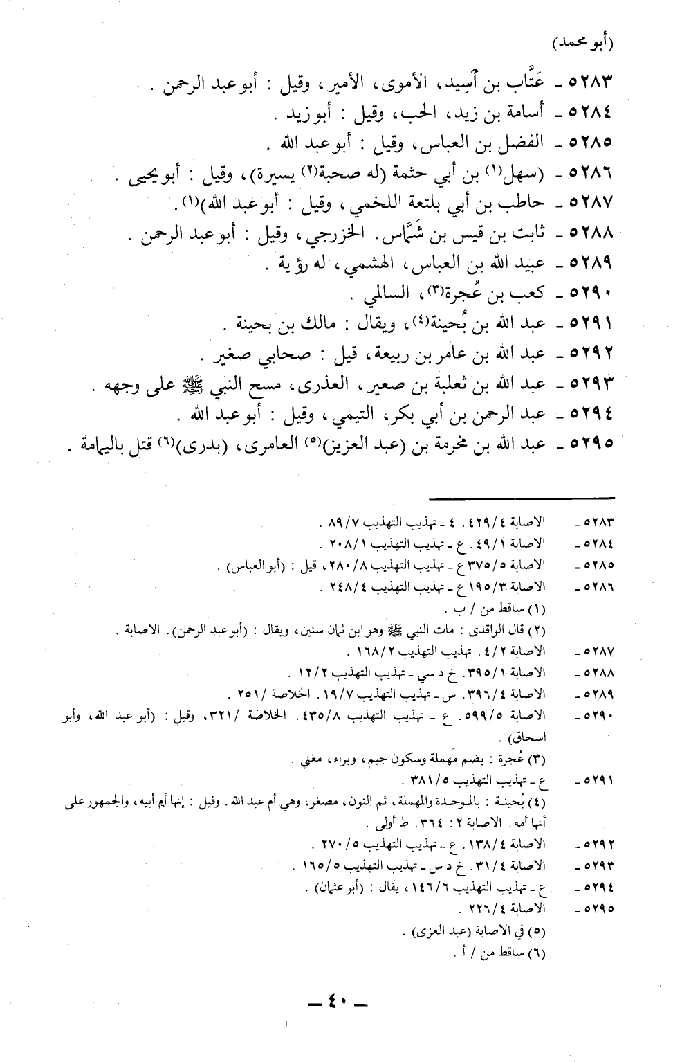 5148-* الإصابة 1/49، ع- تهذيب التهذيب 1/208.