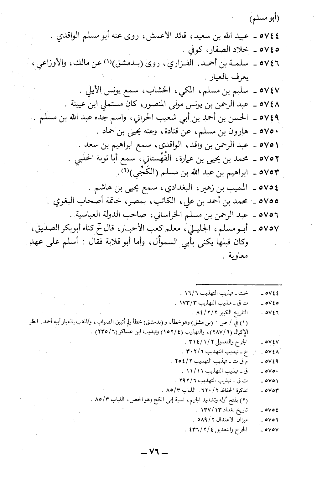 5757- *أبو مسلم الجليلي، معلم كعب الأحبار، قال خ: كناه أبو بكر الصديق، وكان قبلها يكنى بأبي السموأل، وأما أبو قلابة فقال: أسلم على عهد معاوية.
