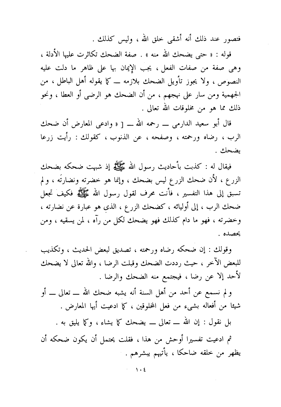 ولم نسمع عن أحد من أهل السنة أنه يشبه ضحك الله - تعالى - أو شيئاً من أفعاله بشيء من فعل المخلوقين، كما ادعيت أيها المعارض.