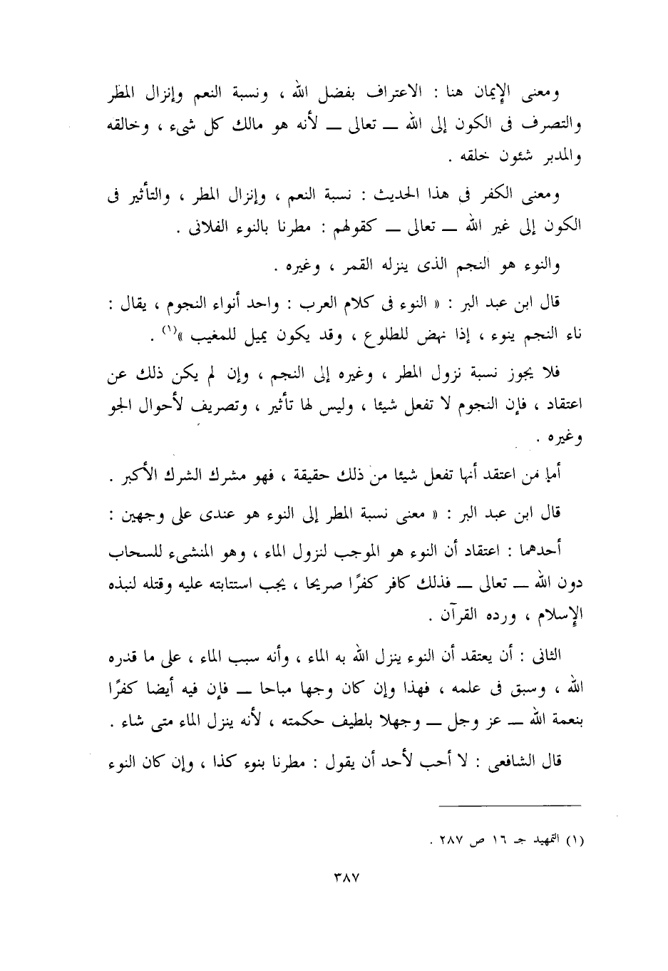 قال ابن عبد البر: ((معنى نسبة المطر إلى النوء هو عندي على وجهين: