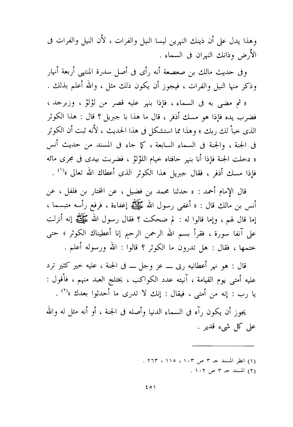 وهذا يدل على أن ذينك النهرين ليسا النيل والفرات؛ لأن النيل والفرات في الأرض، وذانك النهران في السماء.