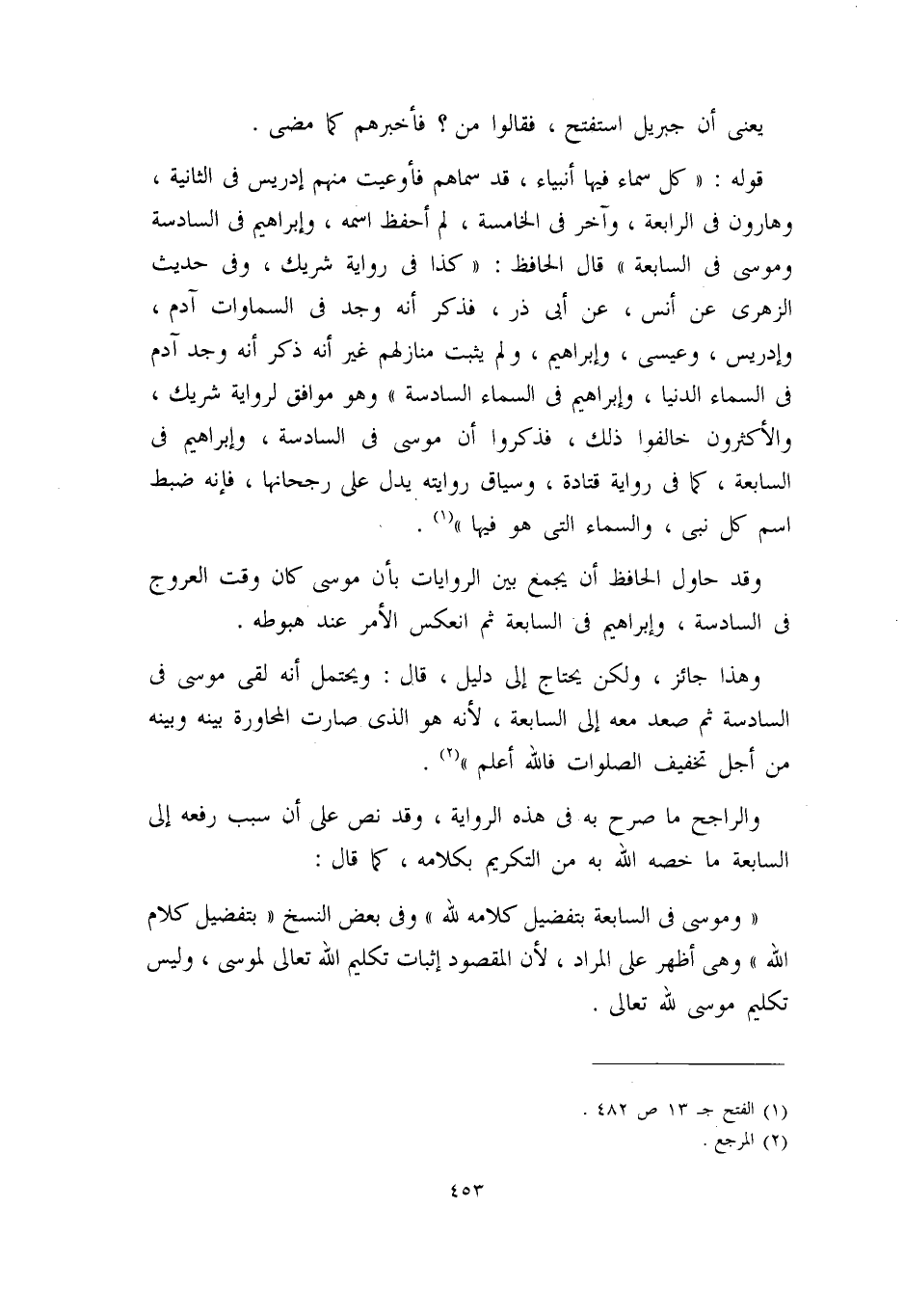 وهذا جائز، ولكن يحتاج إلى دليل، قال: ويحتمل أنه لقي موسى في السادسة، ثم صعد معه إلى السابعة؛ لأنه هو الذي صارت المحاورة بينه وبينه من أجل تخفيف الصلوات، فالله أعلم)) (¬2) .