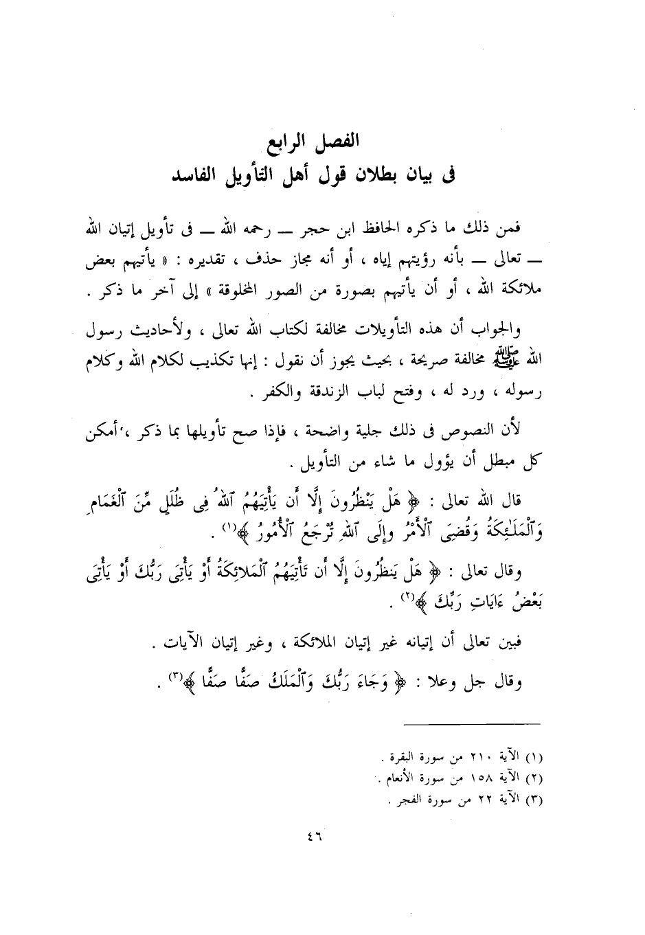 وقال- تعالى -: {هَلْ يَنظُرُونَ إِلاَّ أَن تَأْتِيَهُمُ الْمَلآئِكَةُ أوْ يَأتِىَ رَبُّكَ} (¬2) .