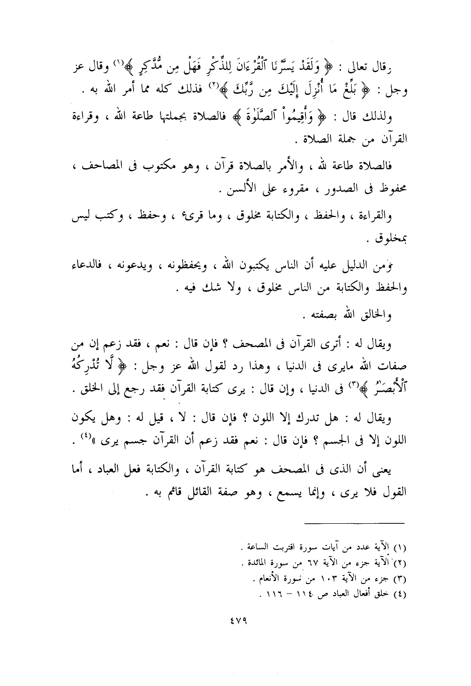 (¬4) ((خلق أفعال العباد)) (114-116) .