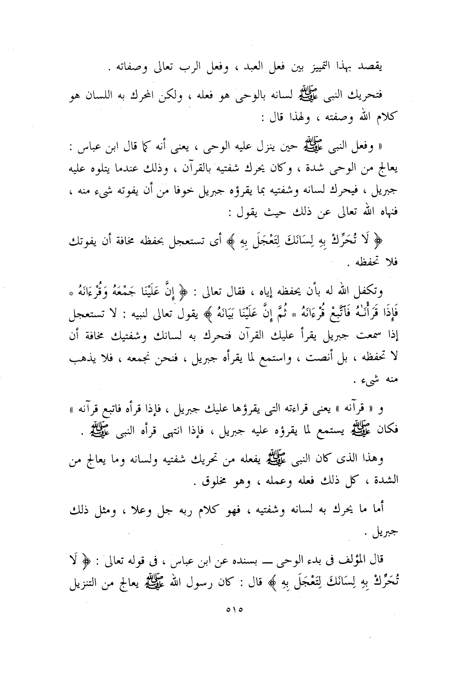 قال المؤلف في بدء الوحي، بسنده عن ابن عباس، في قوله تعالى: {لاَ تُحرِك بِهِ لِسَانَكَ لِتَعجَلَ بِهِ} قال: كان رسول الله - صلى الله عليه وسلم - يعالج من التنزيل