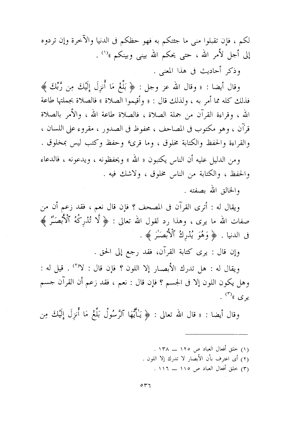 (¬3) ((خلق أفعال العباد)) (ص115-116) .