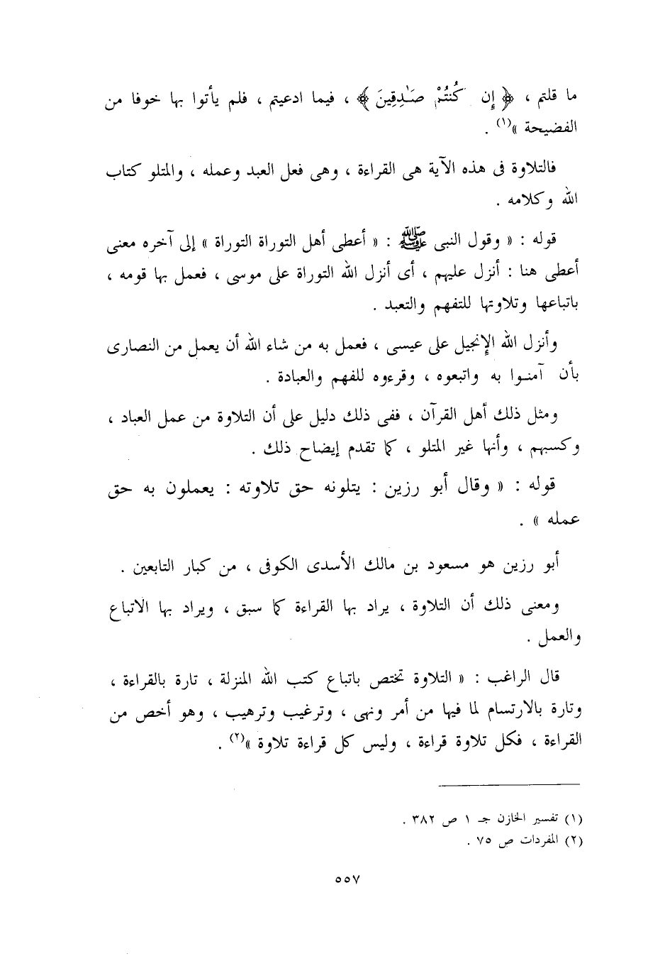 (¬1) ((تفسير الخازن)) (1/382) .