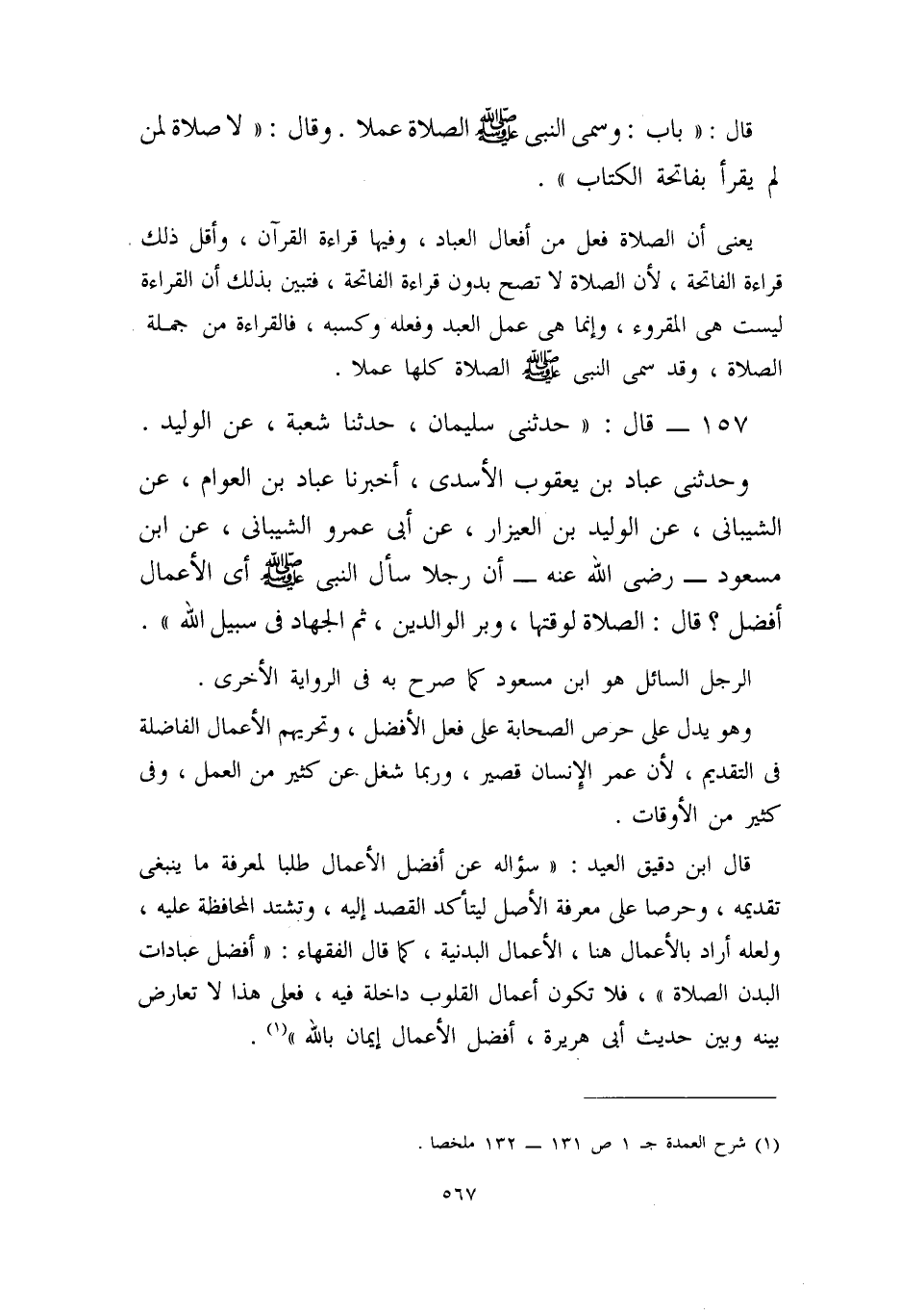 قال: ((باب: وسمى النبي – صلى الله عليه وسلم – الصلاة عملاً. وقال: ((لا صلاة لمن لم يقرأ بفاتحة الكتاب)) .
