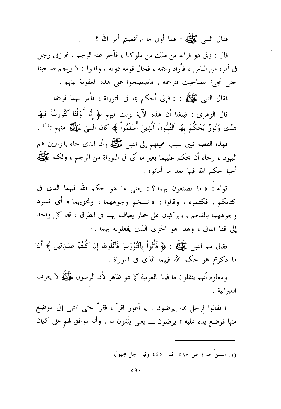 ومعلوم أنهم ينقلون ما فيها بالعربية كما هو ظاهر؛ لأن الرسول – صلى الله عليه وسلم – لا يعرف العبرانية.