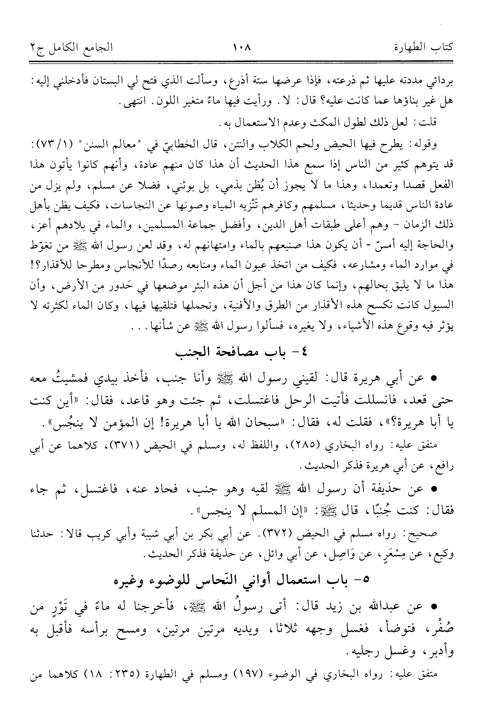 كتاب الجامع الكامل في الحديث الصحيح الشامل المرتب على أبواب الفقه (اسم الجزء: 2)