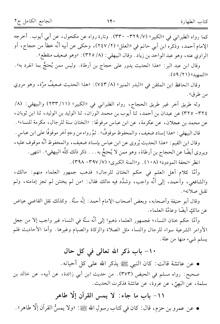كتاب الجامع الكامل في الحديث الصحيح الشامل المرتب على أبواب الفقه (اسم الجزء: 2)