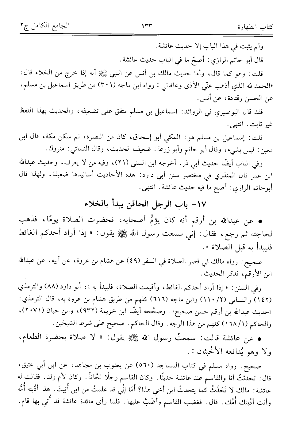 كتاب الجامع الكامل في الحديث الصحيح الشامل المرتب على أبواب الفقه (اسم الجزء: 2)