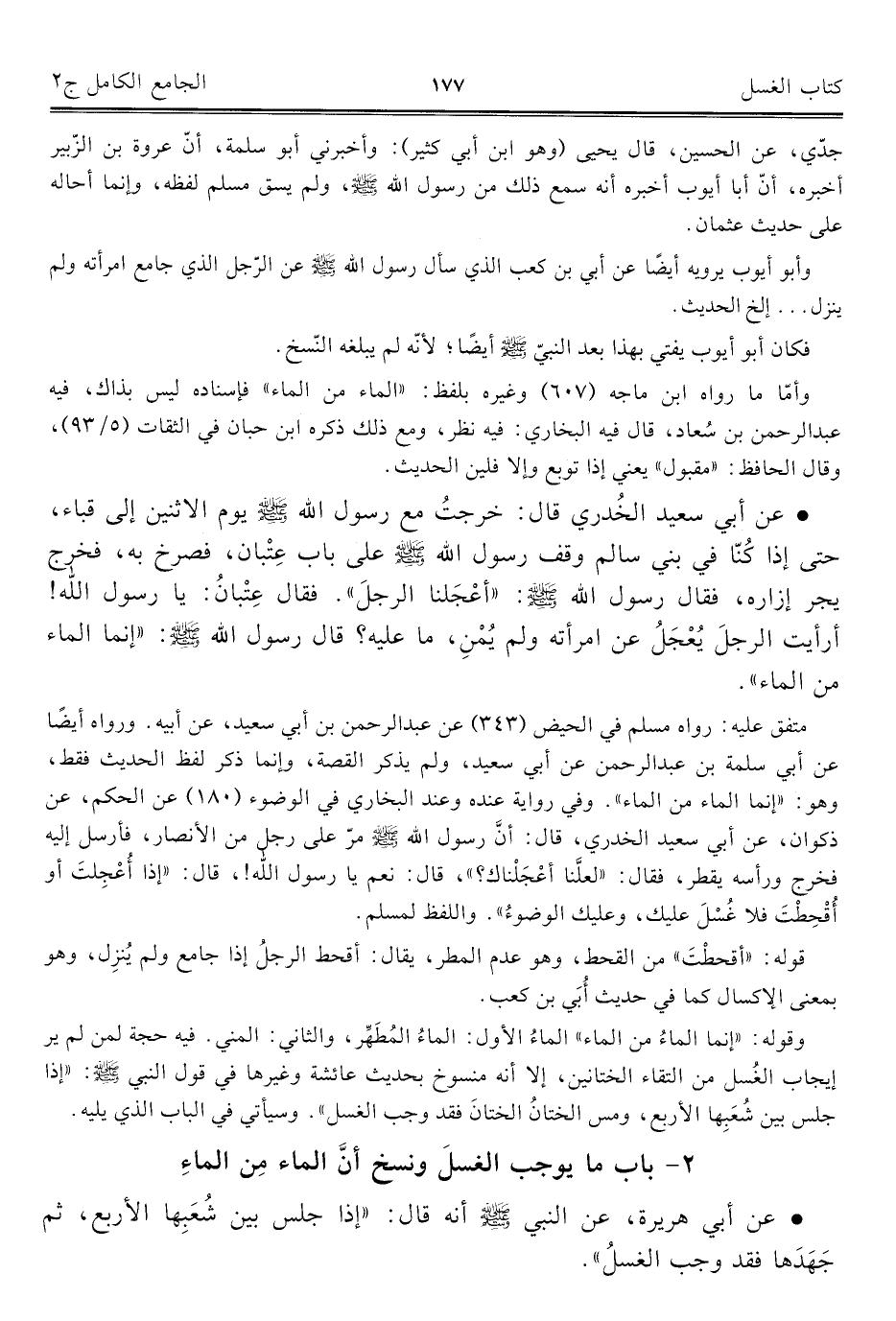 ٢ - باب ما يوجب الغسلَ ونسخ أنَّ الماء مِن الماءِ