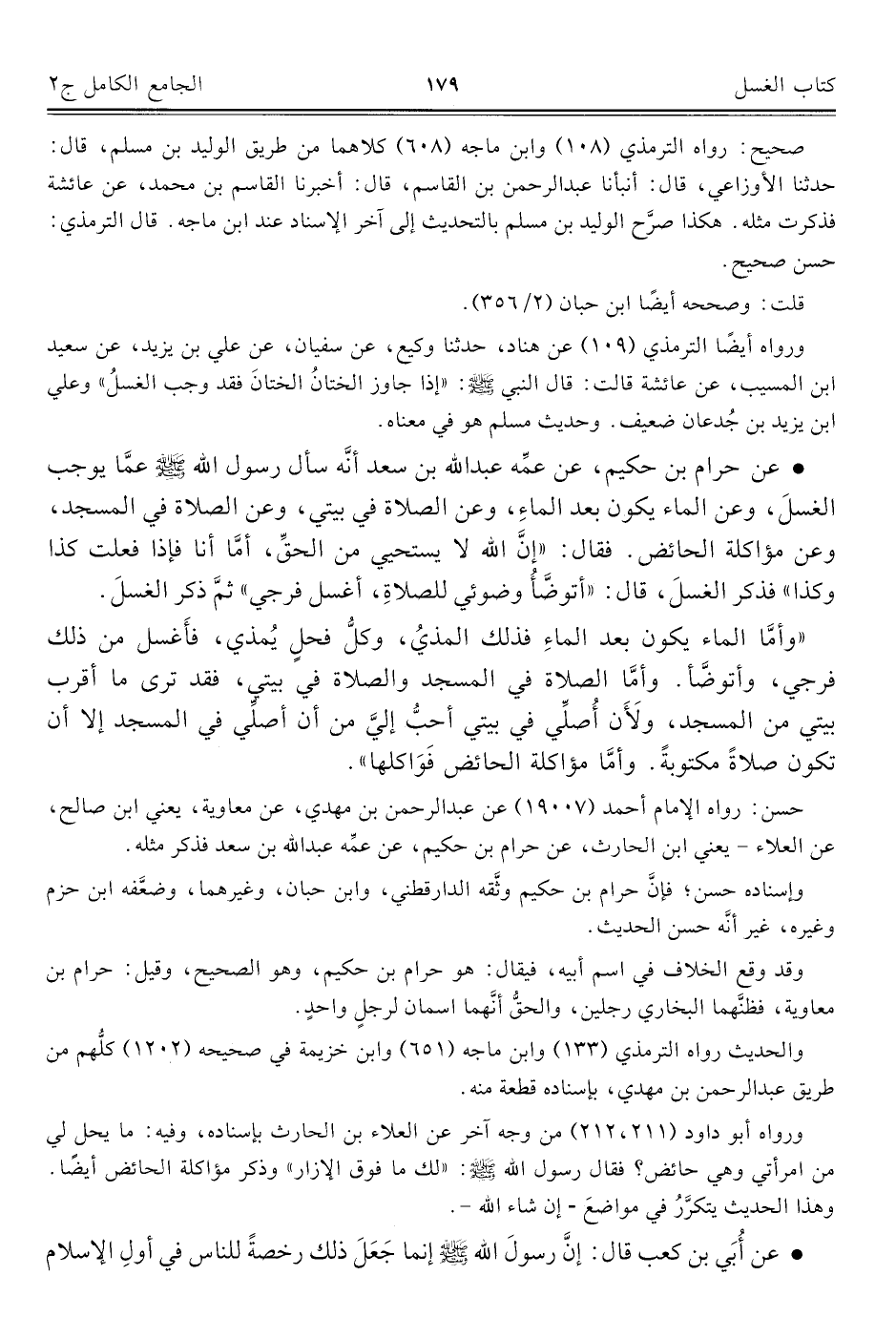 كتاب الجامع الكامل في الحديث الصحيح الشامل المرتب على أبواب الفقه (اسم الجزء: 2)