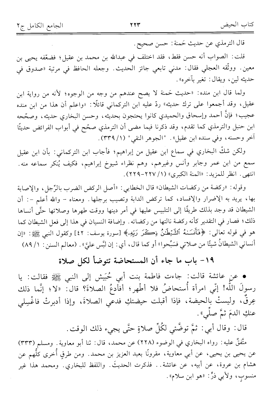 قال الترمذي عن حديث حَمنة: حسن صحيح.
