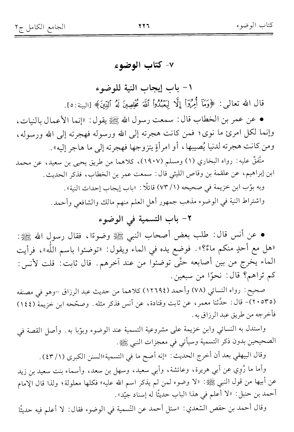 كتاب الجامع الكامل في الحديث الصحيح الشامل المرتب على أبواب الفقه (اسم الجزء: 2)