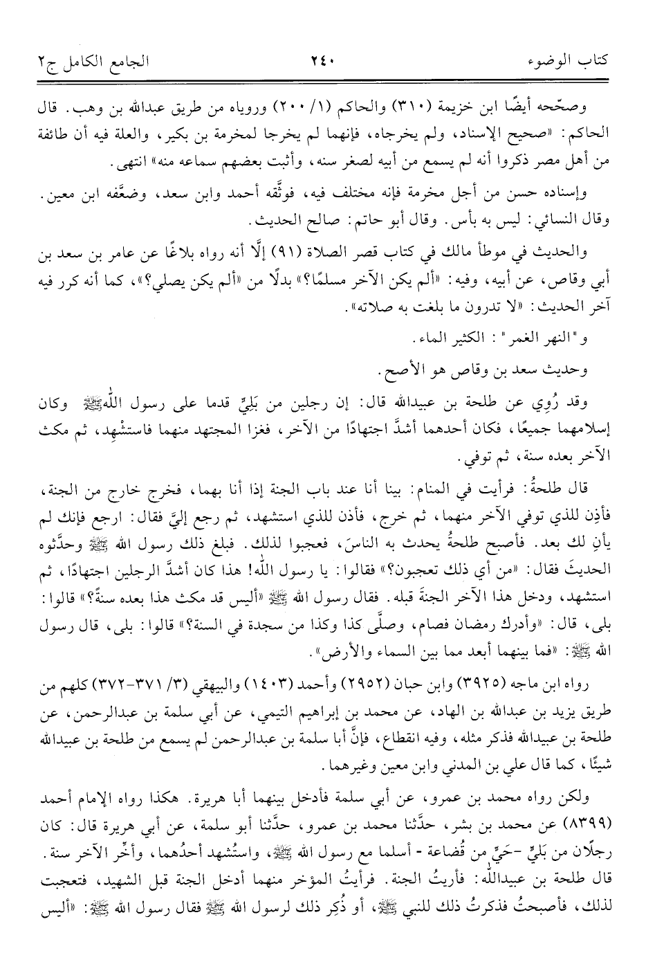 كتاب الجامع الكامل في الحديث الصحيح الشامل المرتب على أبواب الفقه (اسم الجزء: 2)