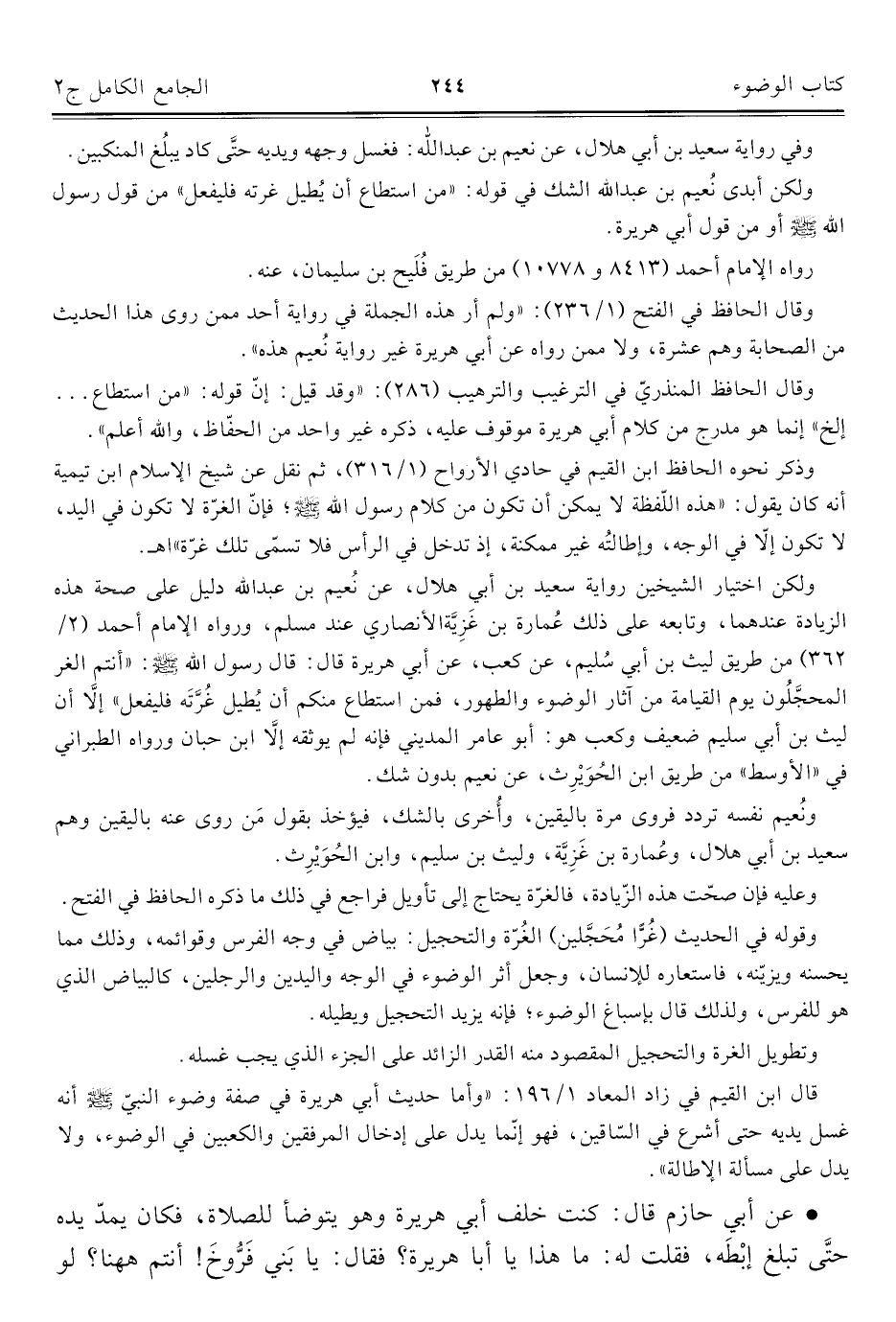 ولكن أبدى نُعيم بن عبد الله الشك في قوله: "من استطاع أن يُطيل غرته فليفعل" من قول رسول الله - صلى الله عليه وسلم - أو من قول أبي هريرة.