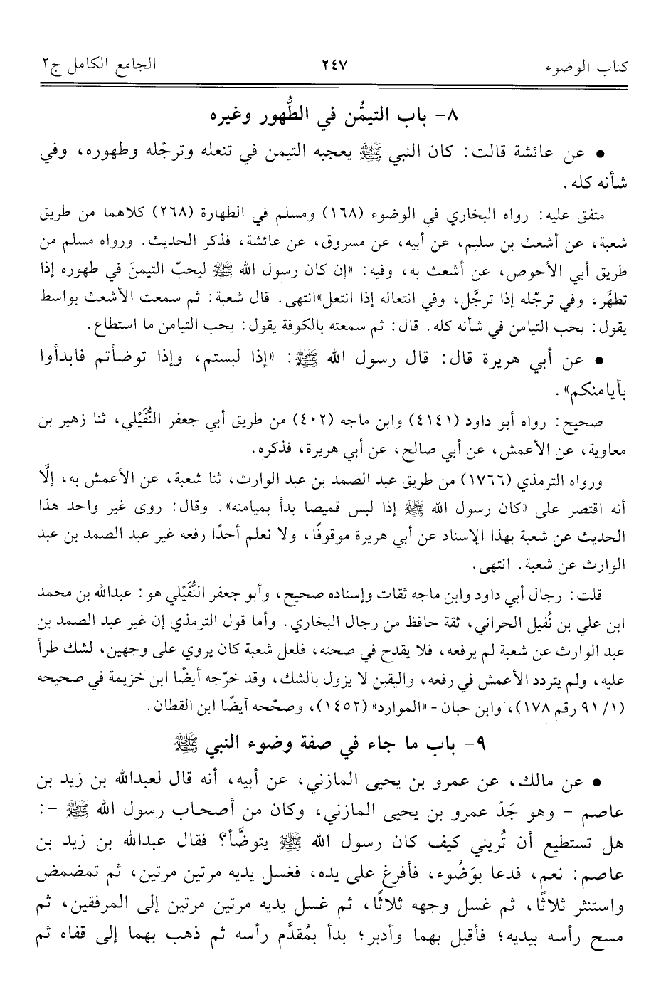 كتاب الجامع الكامل في الحديث الصحيح الشامل المرتب على أبواب الفقه (اسم الجزء: 2)