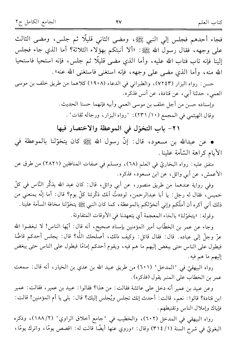 ٢١ - باب التخوّل في الموعظة والاختصار فيها