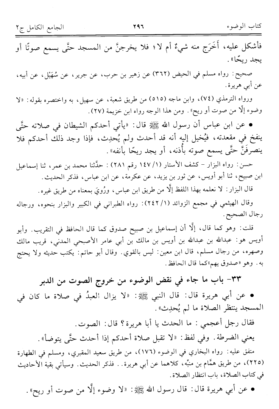 ٣٣ - باب ما جاء في نقض الوضوء من خروج الصوت من الدبر