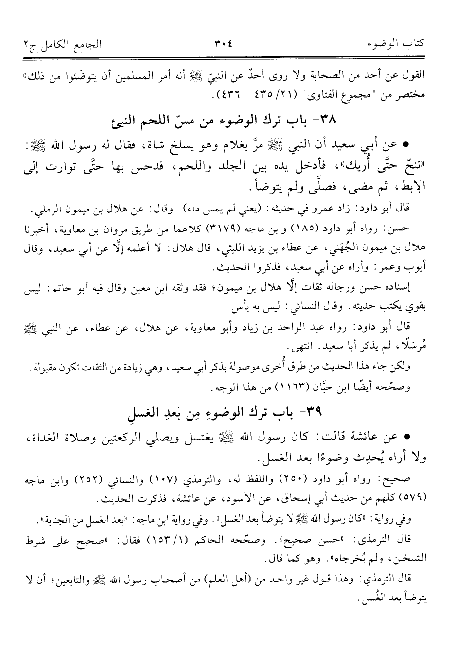 كتاب الجامع الكامل في الحديث الصحيح الشامل المرتب على أبواب الفقه (اسم الجزء: 2)
