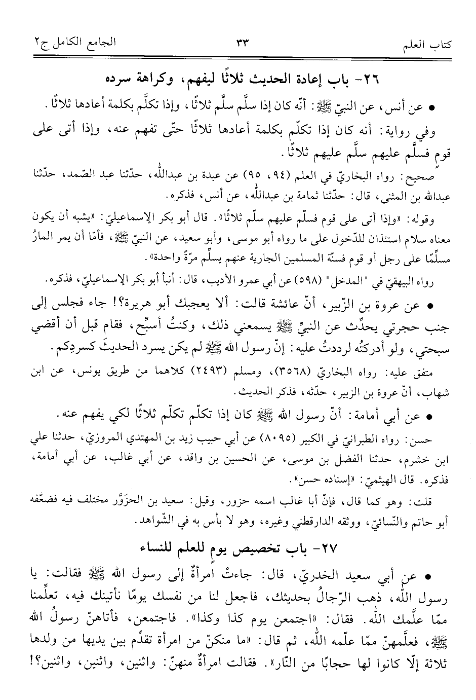 كتاب الجامع الكامل في الحديث الصحيح الشامل المرتب على أبواب الفقه (اسم الجزء: 2)