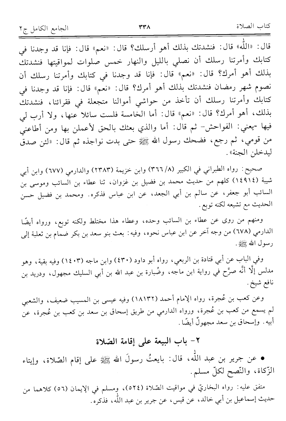 كتاب الجامع الكامل في الحديث الصحيح الشامل المرتب على أبواب الفقه (اسم الجزء: 2)