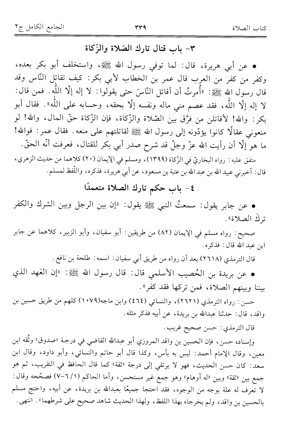 ٣ - باب قتال تارك الصّلاة والزّكاة