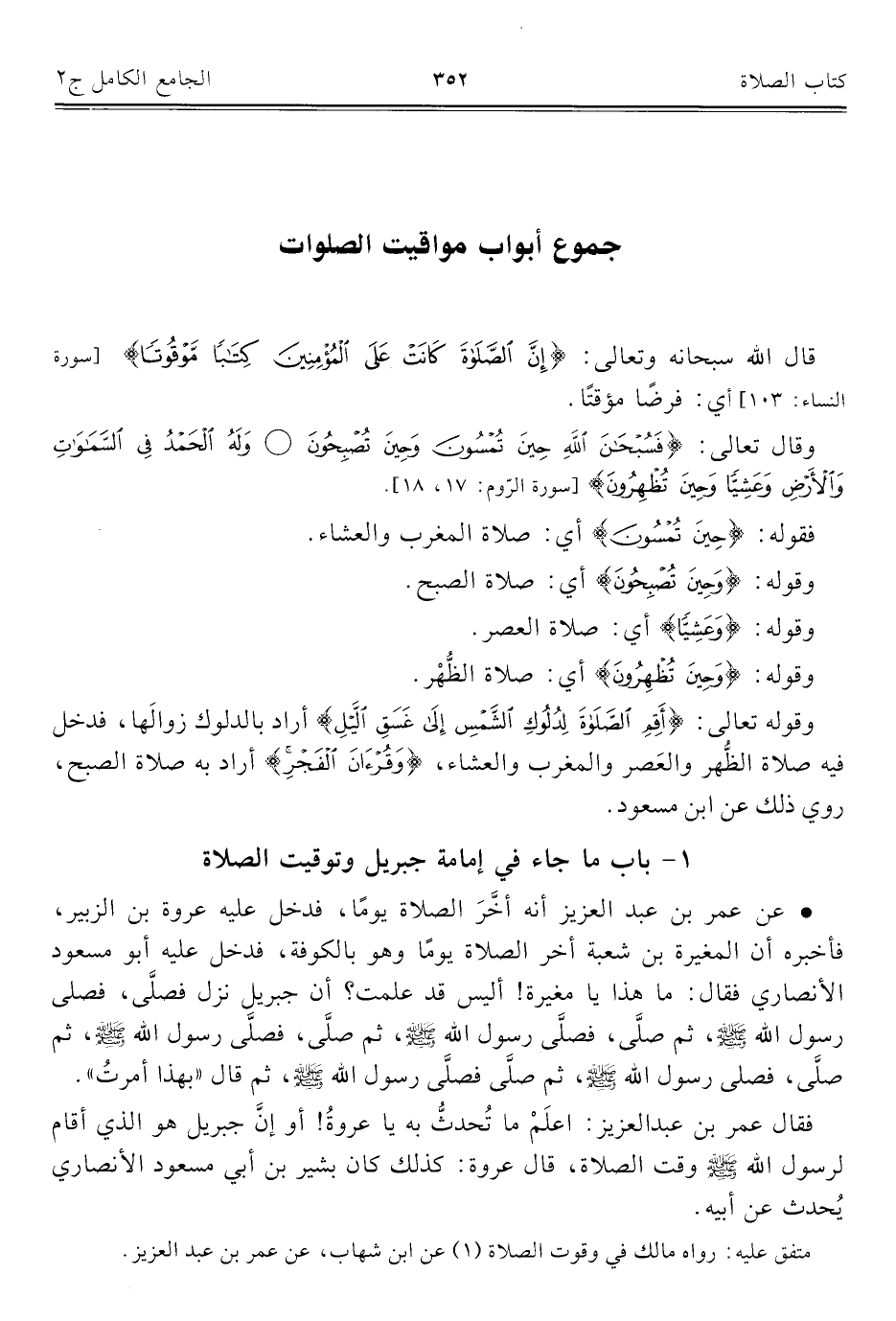 ١ - باب ما جاء في إمامة جبريل وتوقيت الصلاة