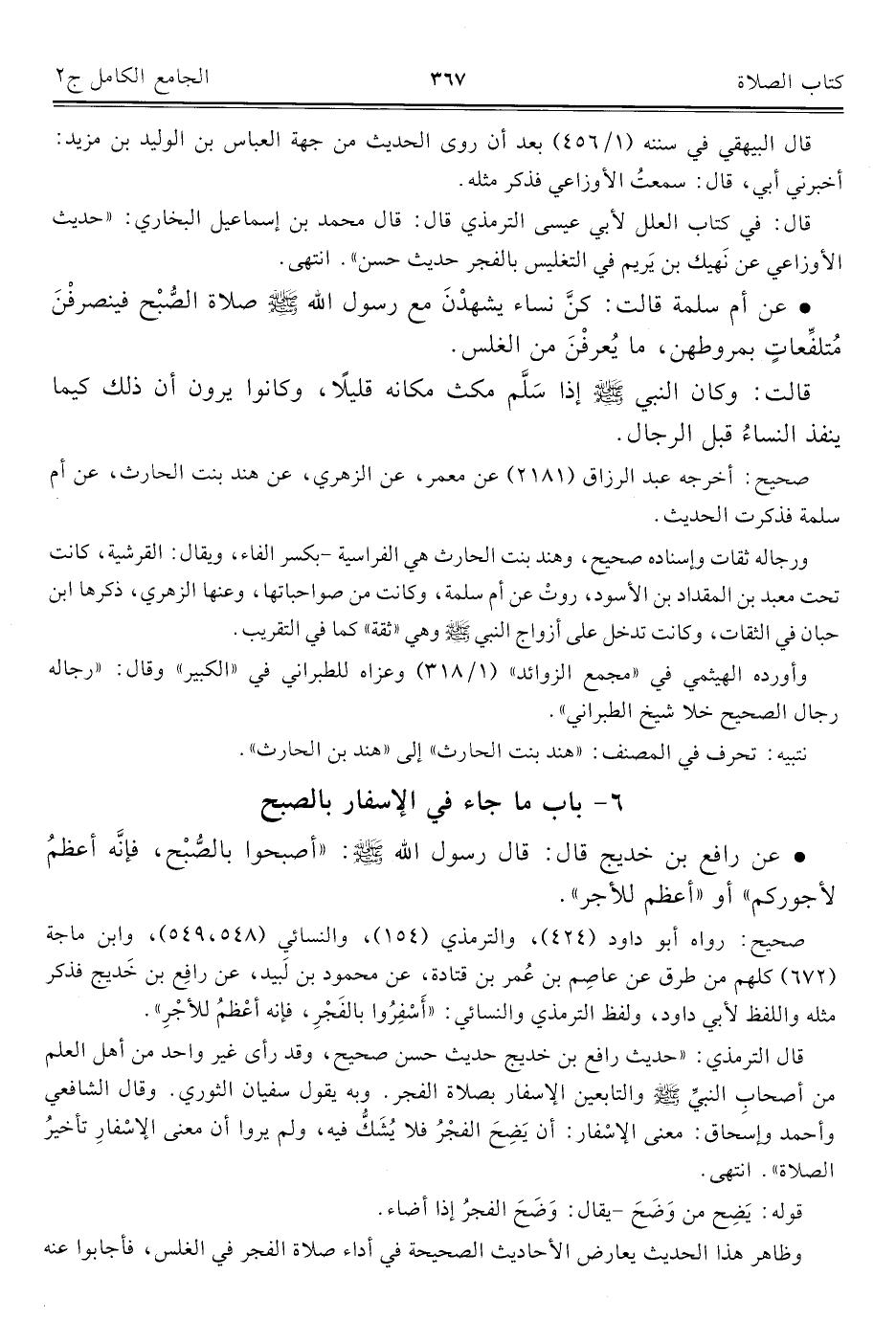 كتاب الجامع الكامل في الحديث الصحيح الشامل المرتب على أبواب الفقه (اسم الجزء: 2)