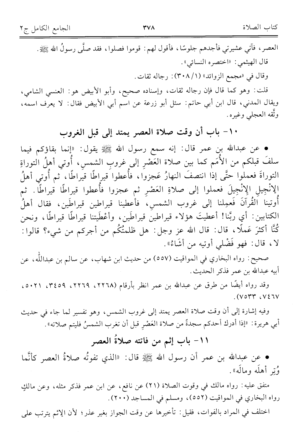 كتاب الجامع الكامل في الحديث الصحيح الشامل المرتب على أبواب الفقه (اسم الجزء: 2)