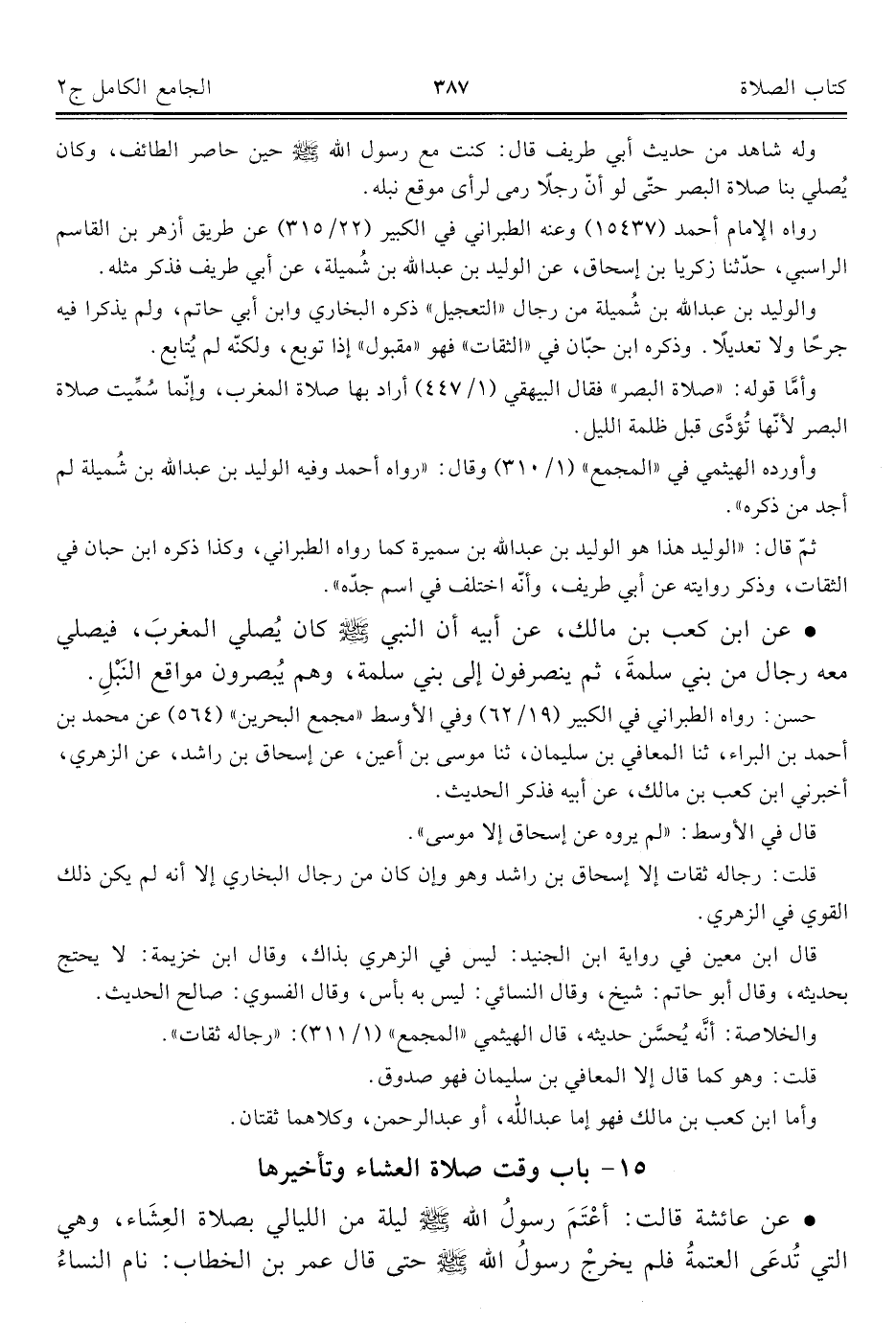 كتاب الجامع الكامل في الحديث الصحيح الشامل المرتب على أبواب الفقه (اسم الجزء: 2)