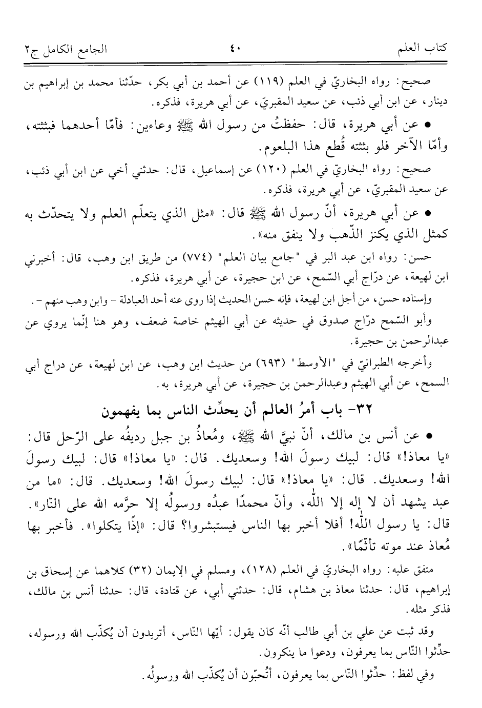 ٣٢ - باب أمرُ العالم أن يحدِّث النّاس بما يفهمون