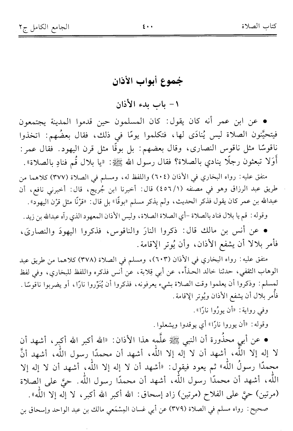 كتاب الجامع الكامل في الحديث الصحيح الشامل المرتب على أبواب الفقه (اسم الجزء: 2)