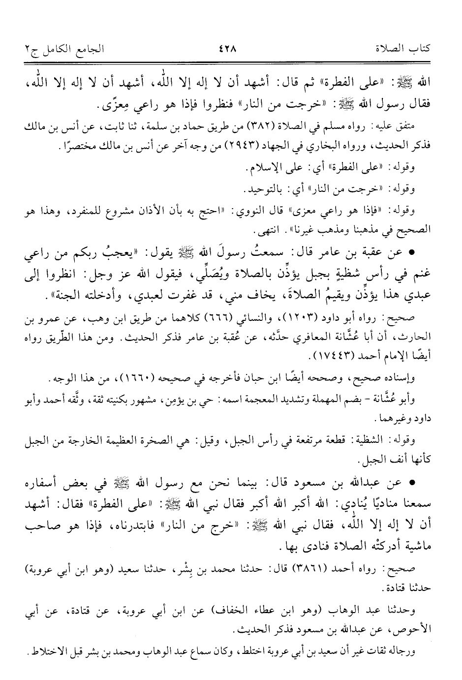 كتاب الجامع الكامل في الحديث الصحيح الشامل المرتب على أبواب الفقه (اسم الجزء: 2)