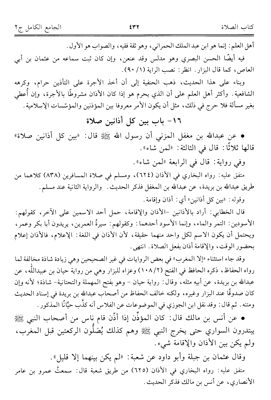 كتاب الجامع الكامل في الحديث الصحيح الشامل المرتب على أبواب الفقه (اسم الجزء: 2)