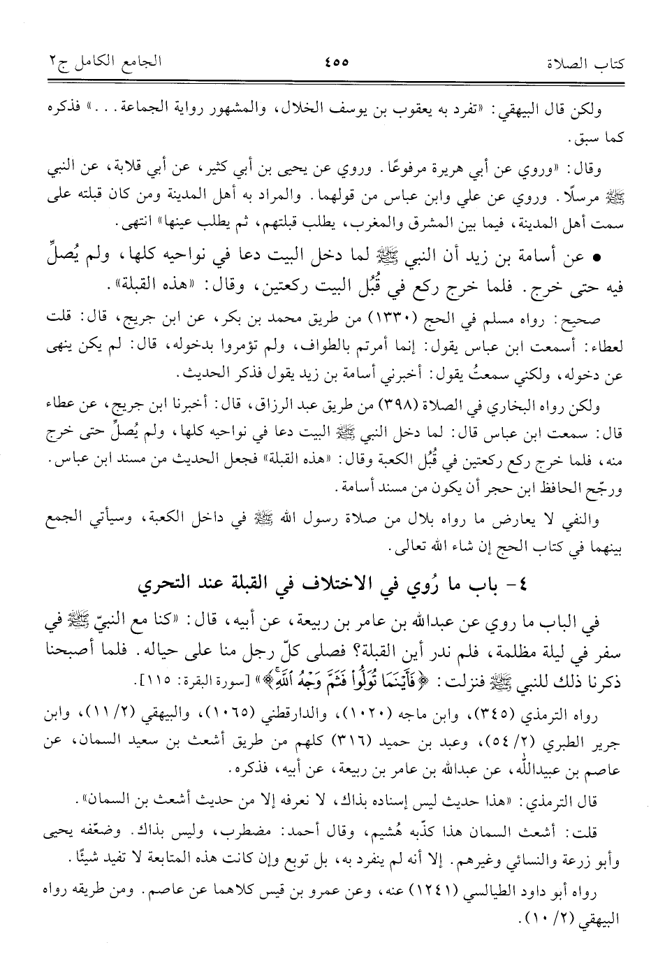 كتاب الجامع الكامل في الحديث الصحيح الشامل المرتب على أبواب الفقه (اسم الجزء: 2)