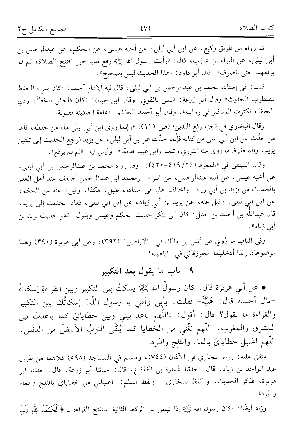 كتاب الجامع الكامل في الحديث الصحيح الشامل المرتب على أبواب الفقه (اسم الجزء: 2)