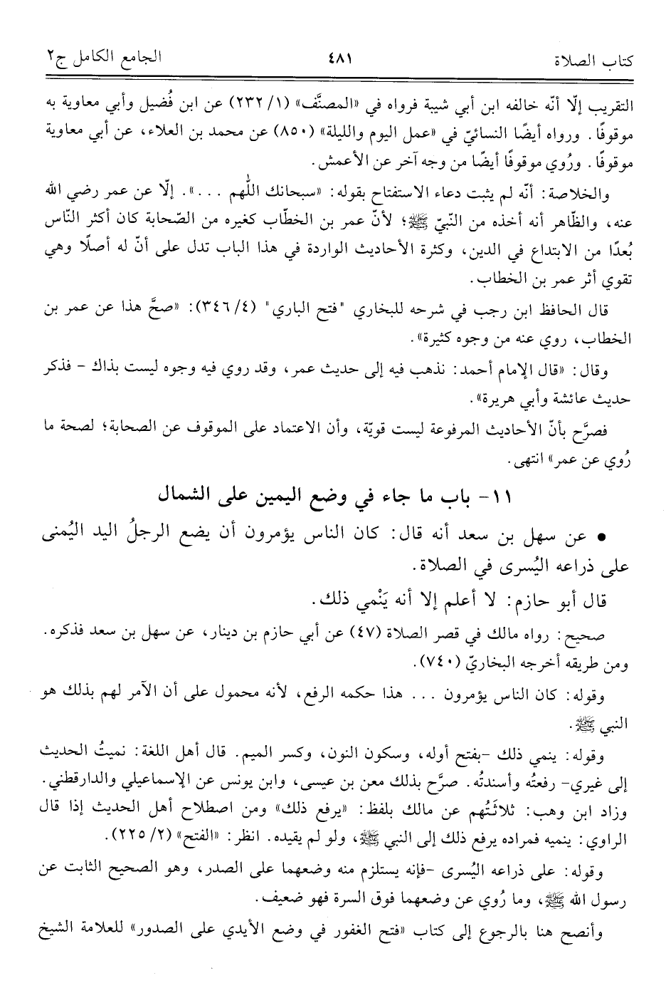 وأنصح هنا بالرجوع إلى كتاب "فتح الغفور في وضع الأيدي على الصدور" للعلامة الشّيخ