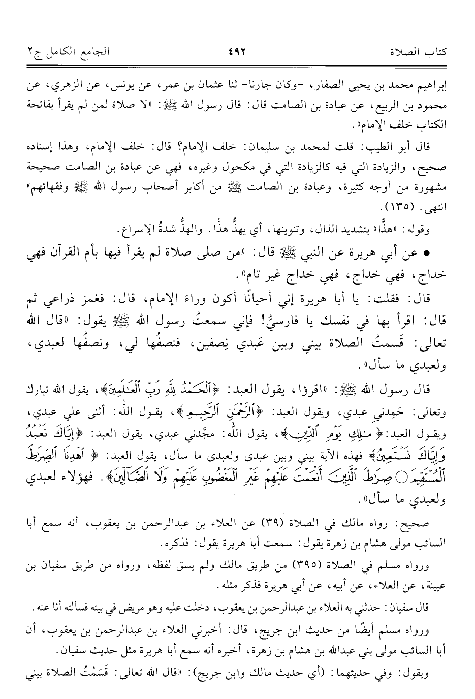 كتاب الجامع الكامل في الحديث الصحيح الشامل المرتب على أبواب الفقه (اسم الجزء: 2)